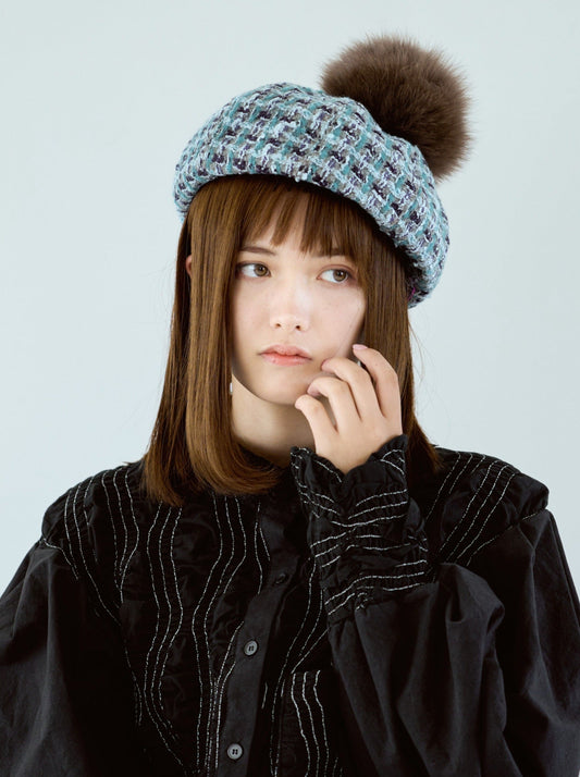 Pompom Tweed Beret